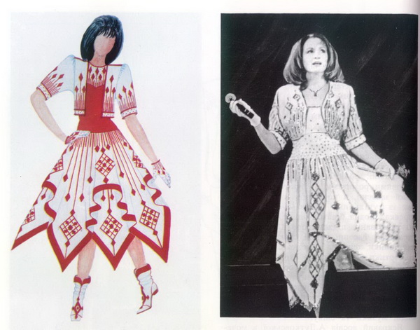 Алла Дутковська ніколи не боялася експериментів: кожна її нова робота принципово відрізнялася від попередньої. Вона творила нову моду, водночас органічно вплітаючи в сучасний сценічний костюм елементи традиційної української автентики. Цей підхід став визначальним і під час роботи над комплектом костюмів для ВІА «Червона рута», коли ансамбль готувався до поїздки в Канаду — гастролей, що мали презентувати українське естрадне мистецтво світу.