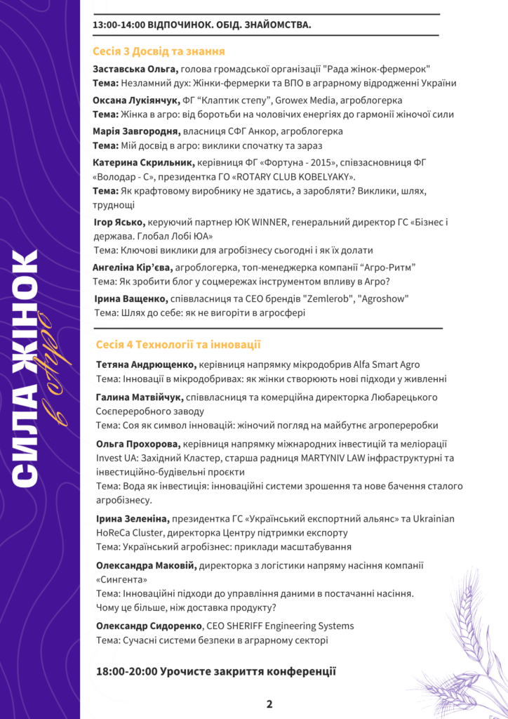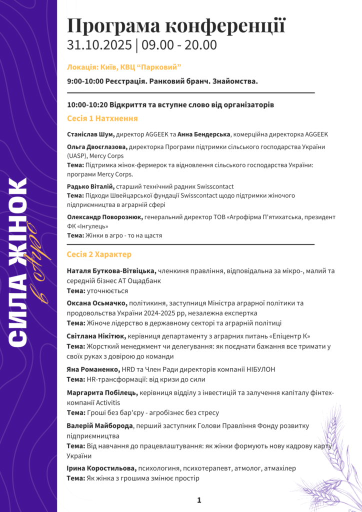 Конференція стане простором для відвертих розмов, натхнення та обміну досвідом між керівницями компаній, фермерками, представницями державних структур, фінансових установ та міжнародних організацій.