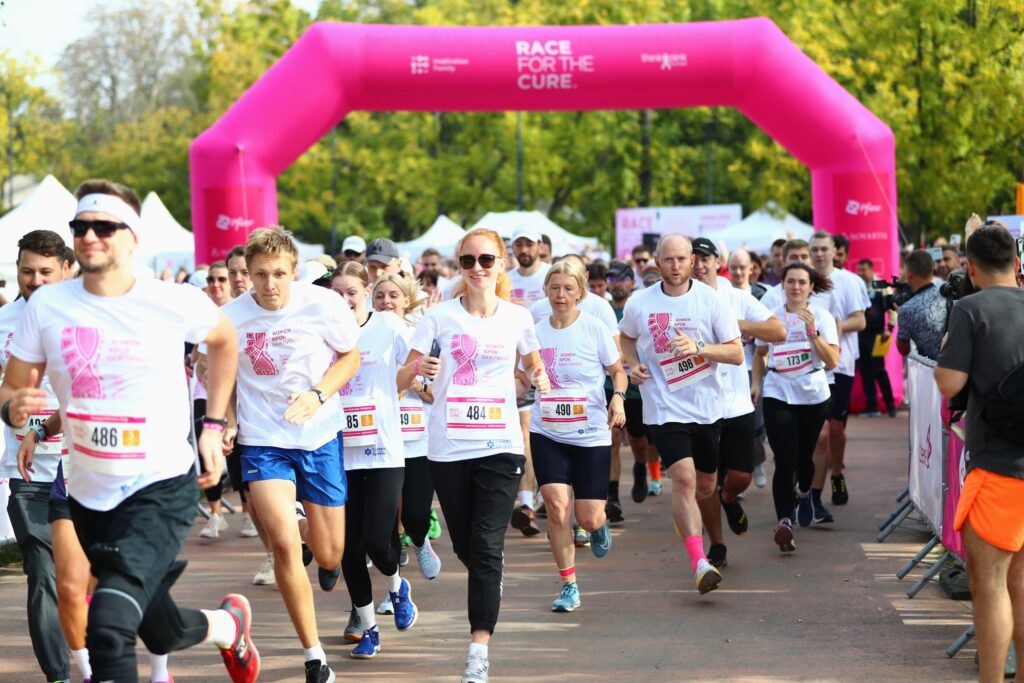 Першим на сцені був Фонд боротьби з раком молочної залози Сьюзен Комен. З кінця 1990 року фонд роздавав яскраво-рожеві козирки тим, хто пережив рак молочної залози та брав участь у забігу на підтримку тих, хто лікується. Восени 1991 року фонд роздав рожеві стрічки кожному учаснику перегонів у Нью-Йорку. Однак це перше використання стрічки було для Комен лише деталлю більшої та важливішої історії гонки.