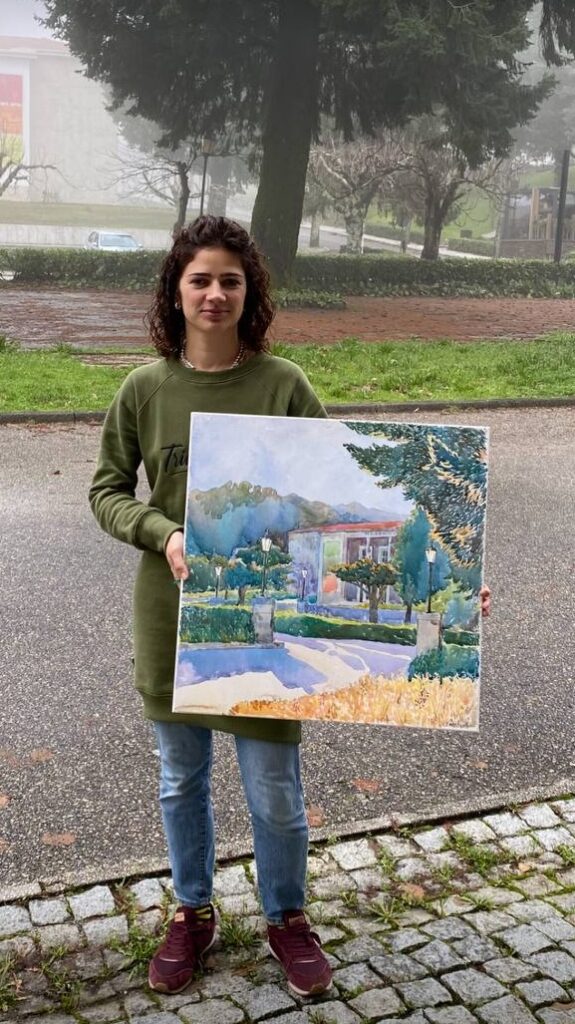 Я стараюся не обмежувати себе якимись темами і жанрами. Це може бути особиста рефлексія про материнство, проблеми в стосунках, пошуки ідентичності чи родинних звʼязків. Я про це пишу, працюючи у фонді, і опрацьовую це у творчості. Остання моя робота, єдина за півроку, створена спеціально для виставки, і це рефлексія на рік проживання за кордоном після повномасштабного вторгнення – через португальський пейзаж я описую свої емоції тих часів.