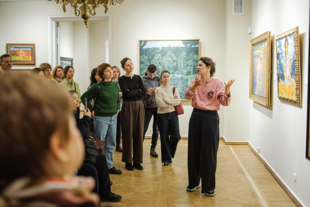 На виставці мені вдалося провести декілька авторських екскурсій. Це був для мене абсолютно новий досвід. Я не мистецтвознавиця, не культурологиня, але про свою особисту рефлексію і досвід роботи з іменами родини я розповідаю півтори-дві години, і люди йдуть за мною і слухають. Це дуже допомогло мені зрозуміти свою цінність, бо багато років я мала комплекси. Часом питають, чому не всі нащадки цим займаються. Тому що досить складно переступити через відчуття власної неекспертизи. Коли ти син чи внук великих людей, наблизитися до них непросто, є величезна дистанція, в тому числі й внутрішнього комплексу. Тож ці екскурсії мене дуже підсилили і надали більше можливостей працювати зі спадщиною.