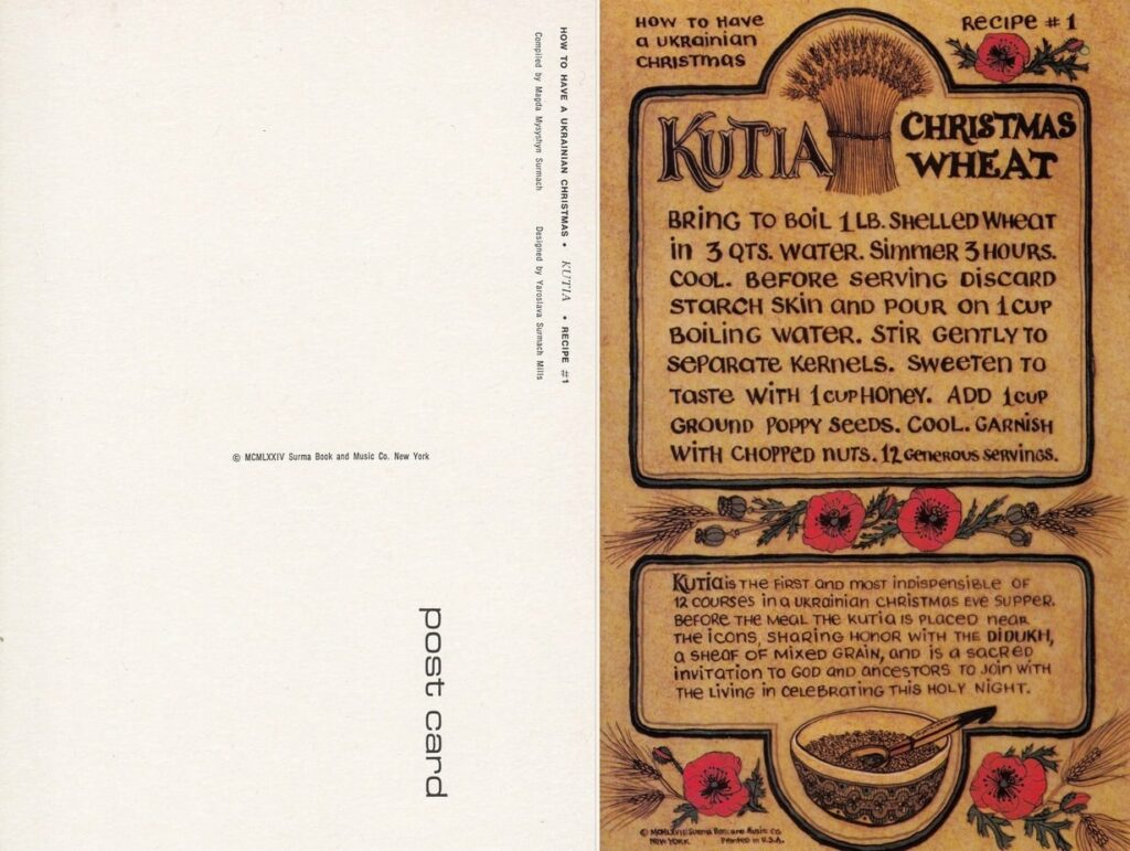 На звороті листівки можна було приклеїти марку, написати адресу і надіслати комусь з побажанням гарних свят та смачної куті. Здавалося б, ідея дуже проста, але в тому і є її перевага – такі листівки користувалися попитом як оригінальний сувенірний подарунок до різдвяних свят, а також мали практичне значення, спрощуючи господиням приготування святкової вечері й навертаючи до українських традицій через кулінарну дипломатію (щоправда, тоді ще цей термін не використовували).
