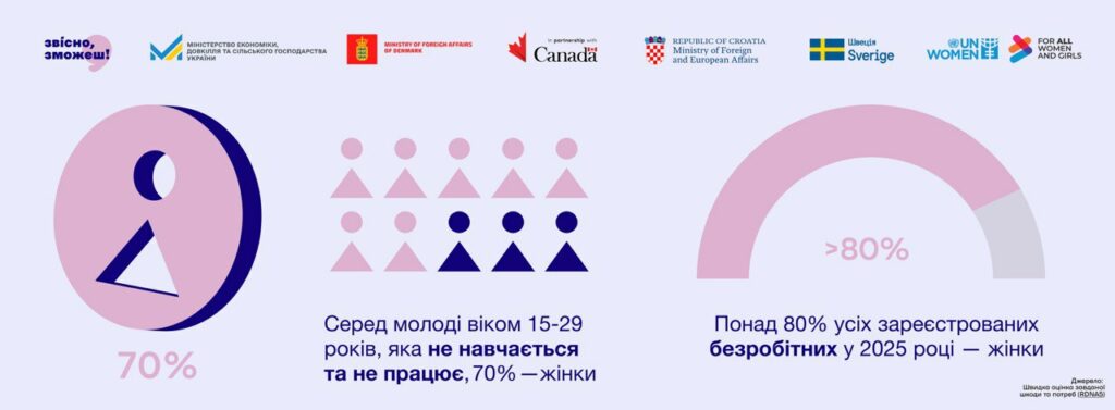 Сьогодні жінки становлять понад 80% усіх офіційно зареєстрованих безробітних. Серед причин — професійна сегрегація, вимушене переміщення, зростання обсягу неоплачуваної доглядової праці, а також недостатній доступ до гнучких форматів роботи, навчання і систем догляду за дітьми.
